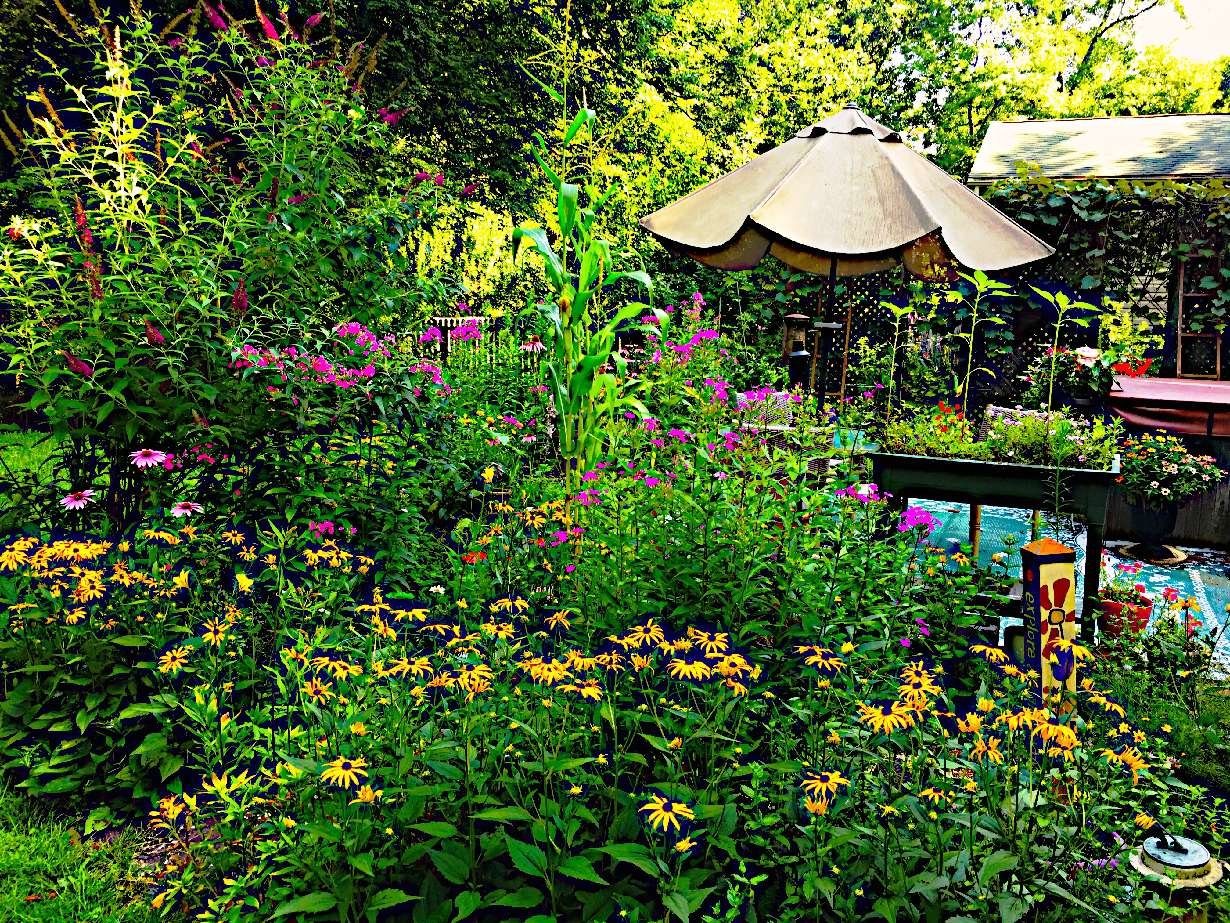 To say I was mesmerized at my very first glimpse inside is fairly accurate. The feeling of looking into my future was pretty intense. We were only twenty four years old, certainly not looking to buy, but how could I pass up finding out more about this oddly long house with what appeared to have not one, but two unique fireplaces, real knotty-pine on some of the walls AND ceilings along with nooks and crannies throughout!? The magical acre that surrounded the building was overgrown, buggy and poison ivy saturated but when I squinted a little and took a moment to dream I saw my garden beds, my little pond, my fairy stuff and plenty of room for outdoor entertaining. Another look and I saw our not-yet-born kids growing up here along with a sweet collection of cats and dogs. I was hooked. Fortunately my partner in life was willing to agree to our biggest impulse buy ever! Hence, Hodge Podge Lodge (fondly, HPL) and my Patchwork Garden was born.