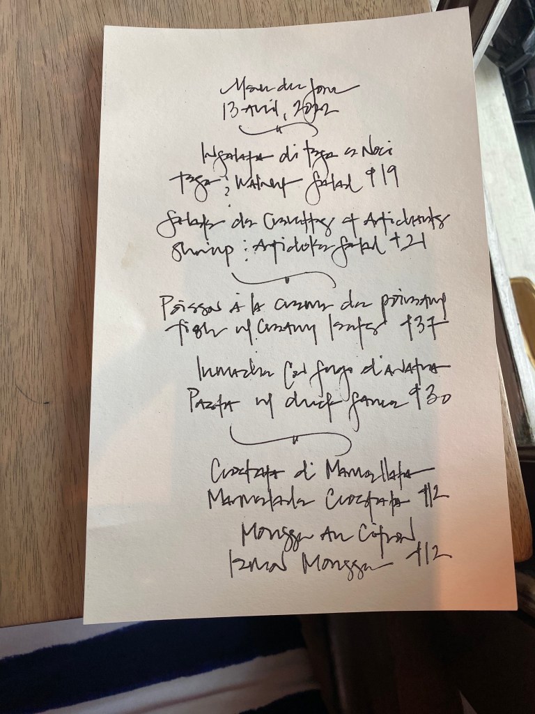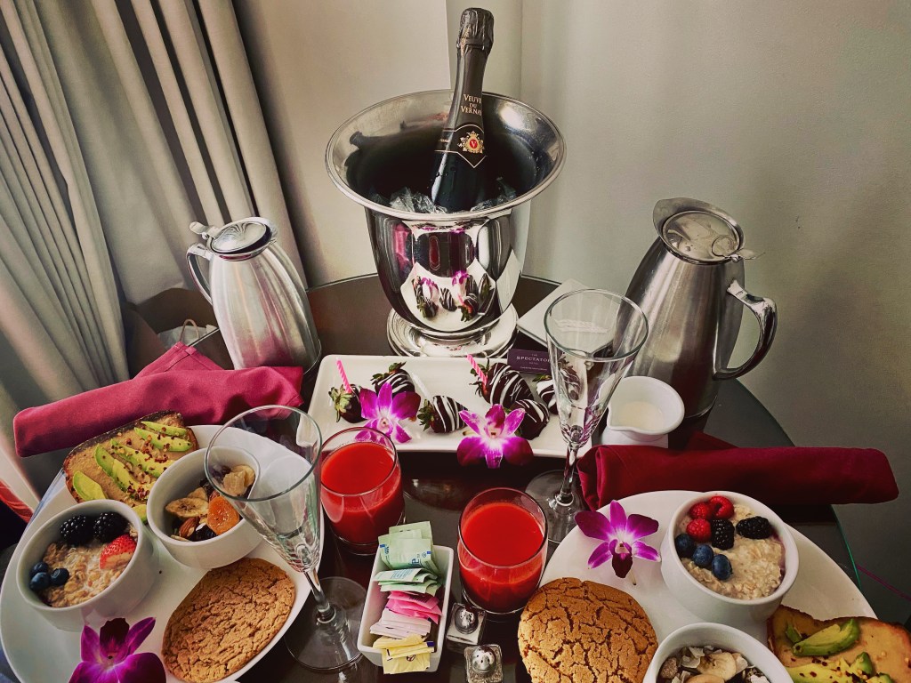 I’ll get all breakfasts out of the way right at the start. They were all at the Spectator and included with the room rate. Such lovely breakfasts indeed with our birthday one including bubbly and chocolate covered strawberries. Each evening we’d fill out a little card with our choice from four plated meals, juice coffee and tea along with what time we’d like to have it. The next morning, voila, a beautiful and seemingly nutritious breakfast would appear. A perfectly lovely way to start the day I tell you.